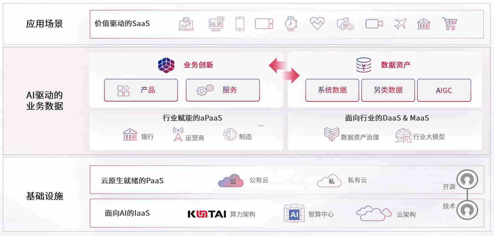 数字时代,,,,围绕企业数字化转型的关键要素,,,瓦力游戏数码开创性的提出数云融合战略和技术体系框架,,,着力在云原生、、、、数字原生、、、AI原生和信创产业上架构产品和服务能力,,为处在不同数字化转型阶段的快消零售、、汽车、、、金融、、、医疗、、、、政企、、教育、、、运营商等行业客户提供泛在的敏捷IT能力和融合的数据驱动能力,,,构建跨界融合创新的数字业务场景和新业务模式,,,助力企业级客户建立面向未来的核心能力和竞争优势,,,,全面推动社会的数字化、、、、智能化转型升级。。。。